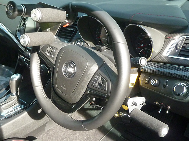 The picture gallery showcases some of the past Custom Accessory Control Systems created by Problem Management Engineering. These are generally installed where the disabled driver has impaired hand function or their hands are required to operate other devices, as may be the case with paraplegic, quadriplegic, amputee and hemiplegic drivers for example.